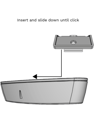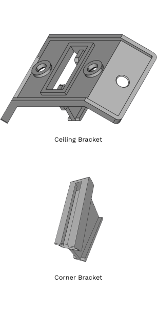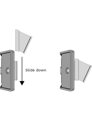 To connect the two brackets for corner mounting, slide the cornet bracket into the ceiling bracket as shown below.
