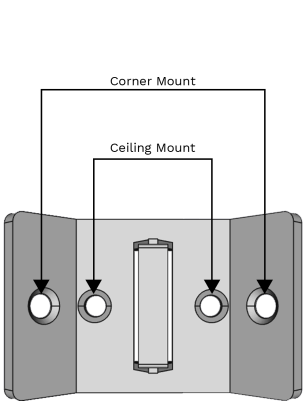 The sensor can be mounted on the ceiling or at a corner with the supplied brackets. When mounted at a corner, the bracket provides a 25-degree tilted down angle.